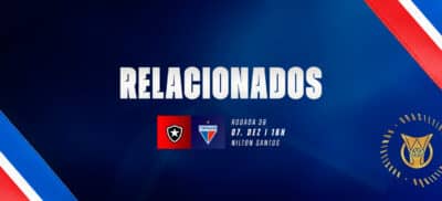 Confira a lista de relacionados para Botafogo x Fortaleza, pelo Brasileirão 6 de dezembro de 2025 11:46